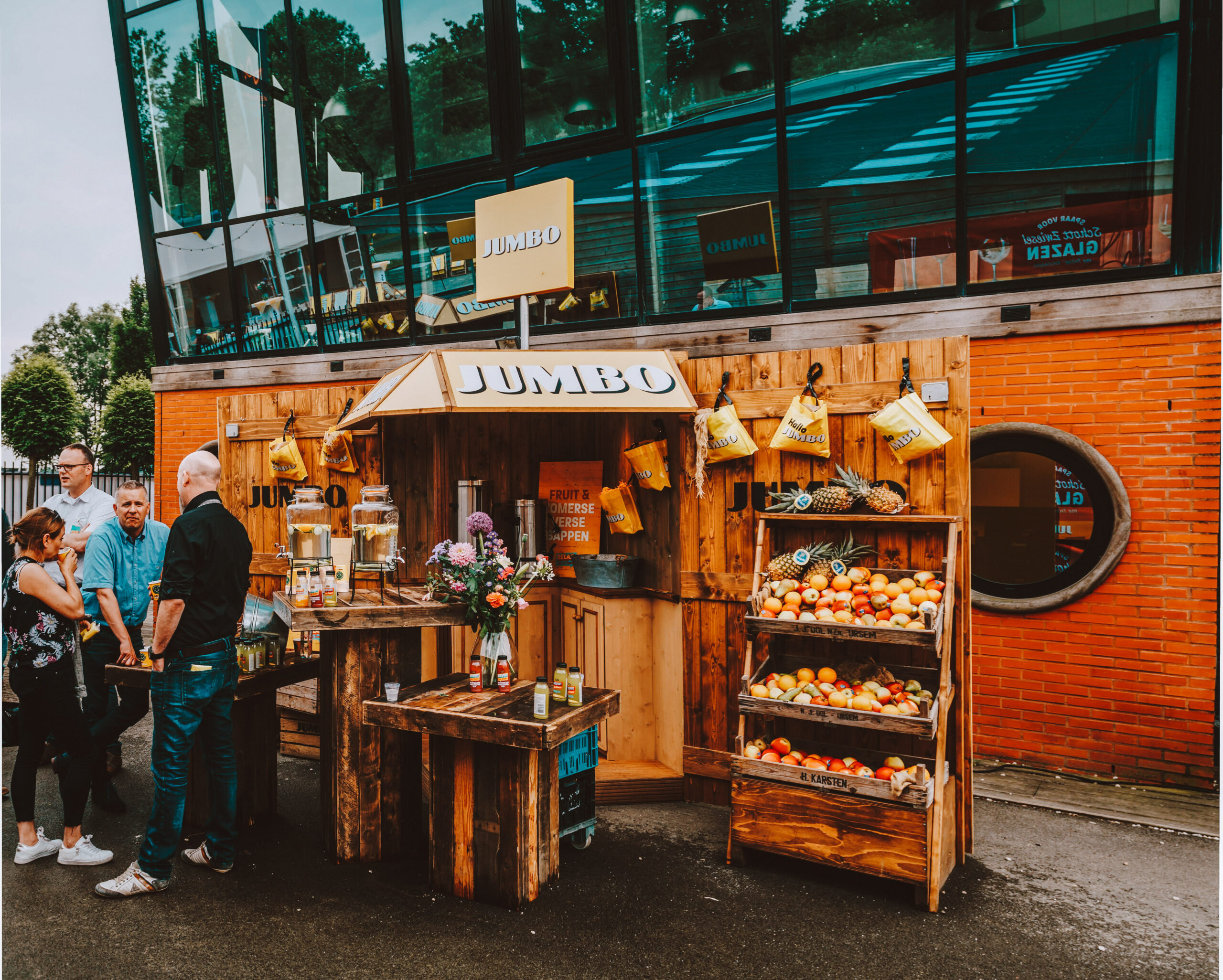 Om het ultieme Jumbo thema te realiseren hebben wij onze locatie compleet omgetoverd in Jumbo stijl. Over de gehele locatie kon je terecht om creatieve en ontspannende workshops te volgen, nieuwe producten te proeven of kennis te maken met het nieuwe kassasysteem. Onze foodtrucks verzorgde heerlijk eten, natuurlijk met de verse producten van Jumbo. Na zo’n spektakel hoeven we natuurlijk niet meer uit te leggen dat inderdaad iedereen met een glimlach naar huis ging.
